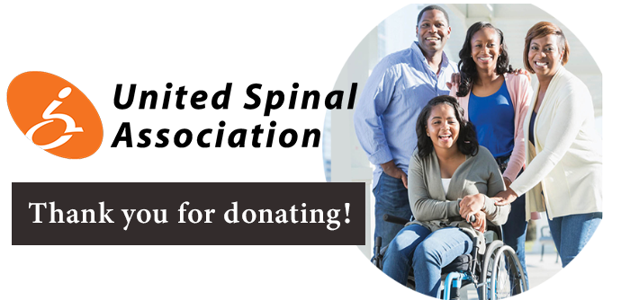 You may make your donation by credit card by completing and submitting the information requested in this secure form. Your gift will enable United Spinal to improve the lives of individuals living with spinal cord injury/disease. United Spinal Association is a 501(c) (3) nonprofit membership organization.