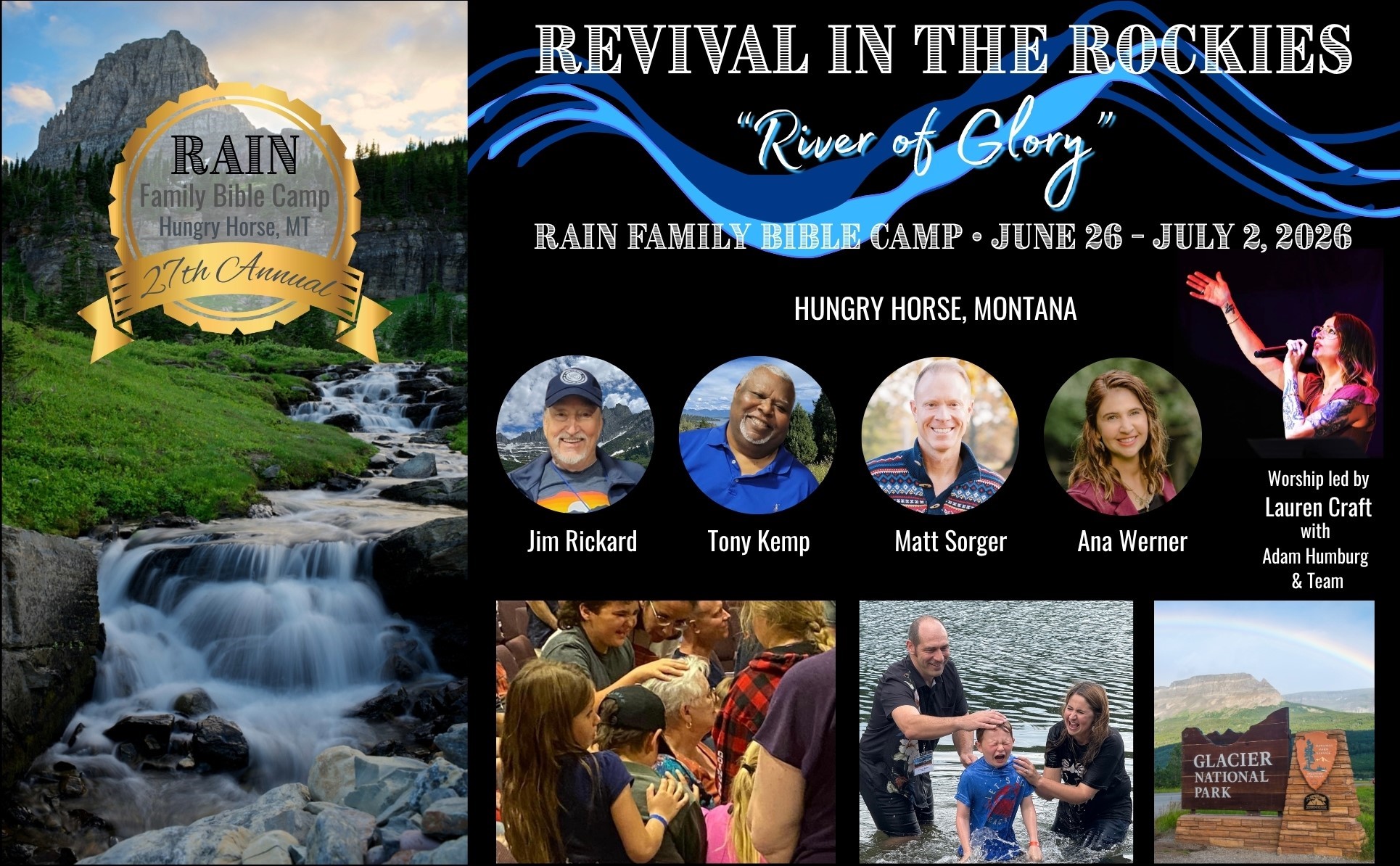 Revival in the Rockies - RAIN Family Bible Camp is made possible each year, through the generous donations received from the campers. The only thing that you must pay for in advance is your lodging and meal package, which help defray our camp facility rental. We believe in faith that God will bring in all the finances needed to cover all costs involved in hosting the camp. Freewill offerings will be received during camp meetings.