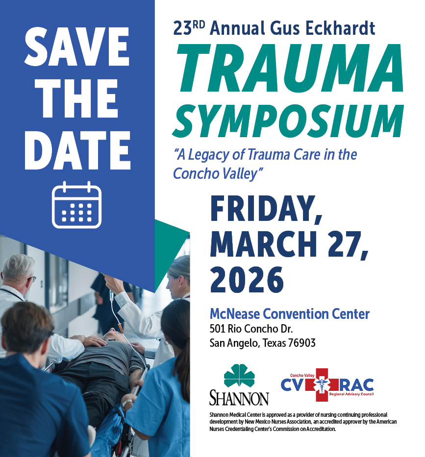 Shannon Medical Center invites all Physicians, Physician Assistants, Advanced Practice Nurses, Nurses, and EMT’s and Paramedics seeking to enhance their knowledge and skills in caring for and managing trauma patients to attend this free, one-day program.