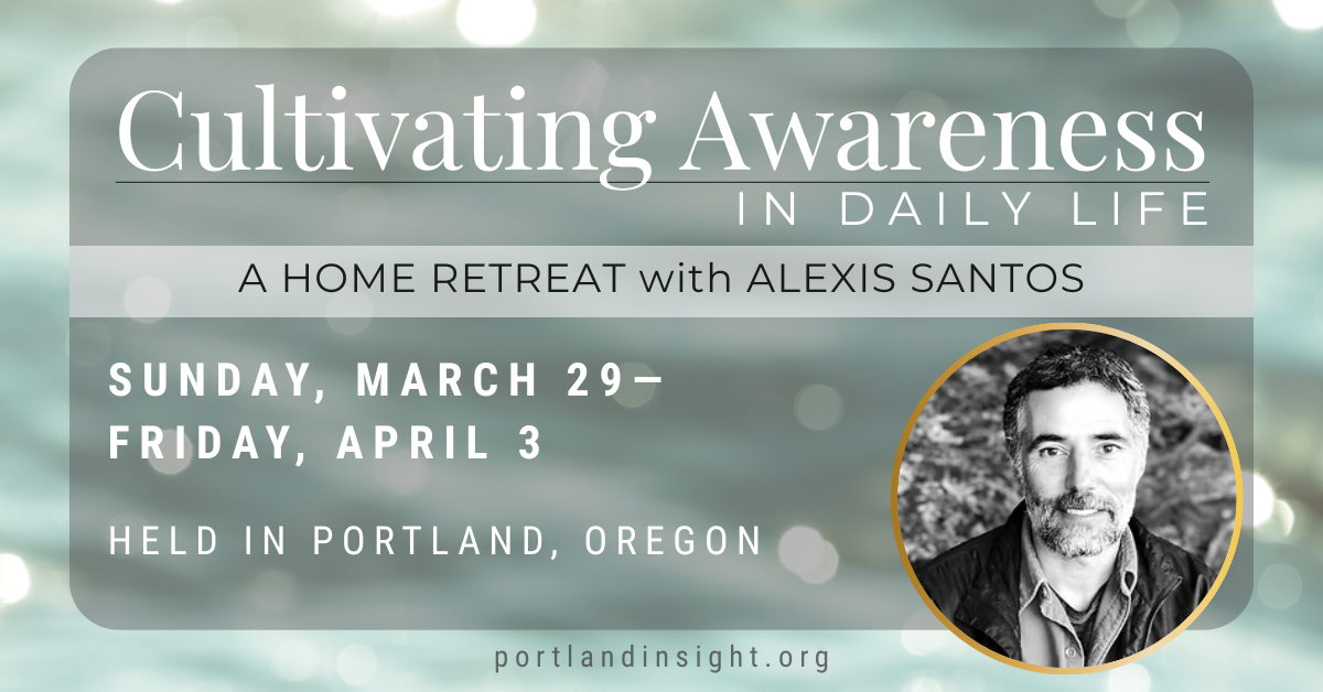 The retreat begins on the evening of Sunday, March 29 with an in-person session at Portland Insight Meditation Center. Then each day until Friday, April 4, the group will gather online in the morning and come back together in-person in the evening. The rest of the time participants will live their lives, putting into practice what is covered in Dharma talks and guided meditations offered when the group is together.