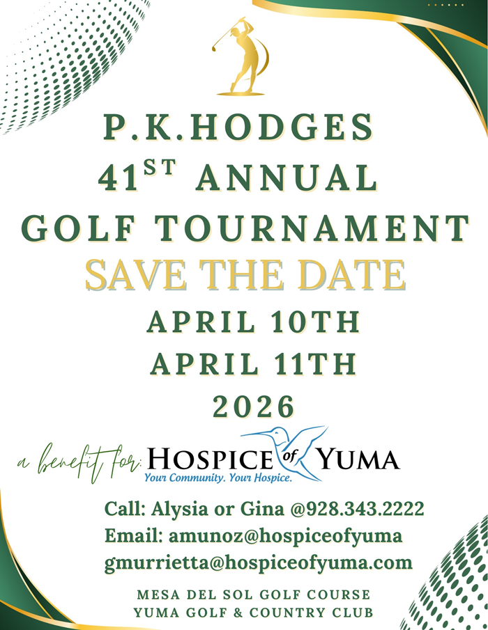 Hospice of Yuma is a not for profit organization 501c(3) and therefore, is NOT allowed to manage or fund any gaming activities. Volunteers of the Golf Committee will oversee the Pari-Mutuels and the Four-Man Team Prize Fund & Skins money. All money collected must be cash. No checks made out to Hospice of Yuma will be accepted for the activities.