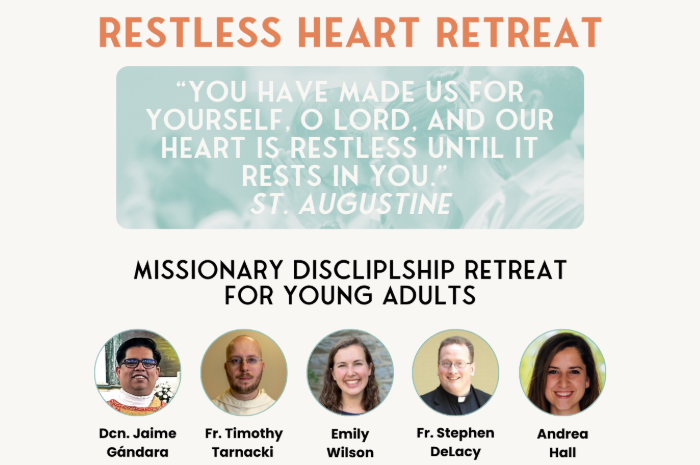 Saint Augustine wrote that “our heart is restless until it rests in the Lord.” Do you experience restlessness in your life? Do you feel that God has made you for something more? Come and experience the Good News during our YAMDI retreat and see what the Lord is inviting you to!