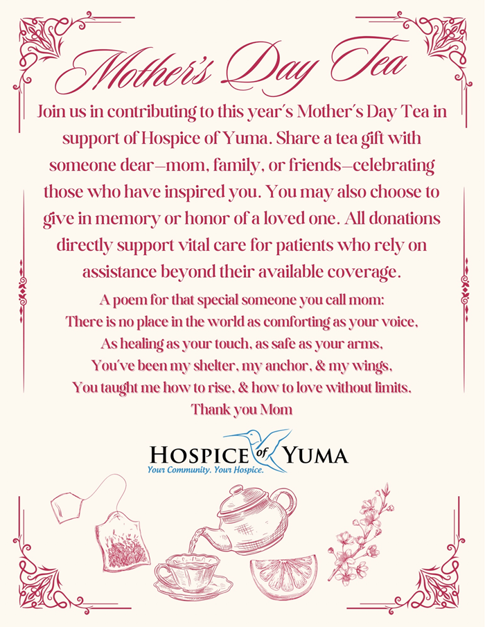 Yes I would like to support Hospice of Yuma patients and their families by donating to the Mother's Day Tea