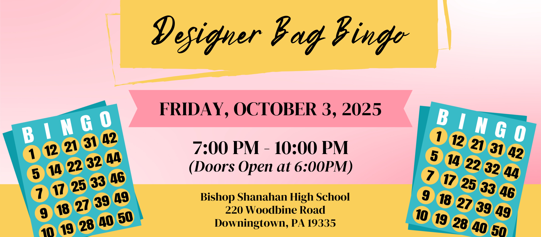 Thank you for registering in advance for Bishop Shanahan High School's Designer Bag BINGO! Your participation and generosity contribute towards funds that support Shanahan students. For this, we are grateful! We look forward to having you with us on Friday, October 3rd!