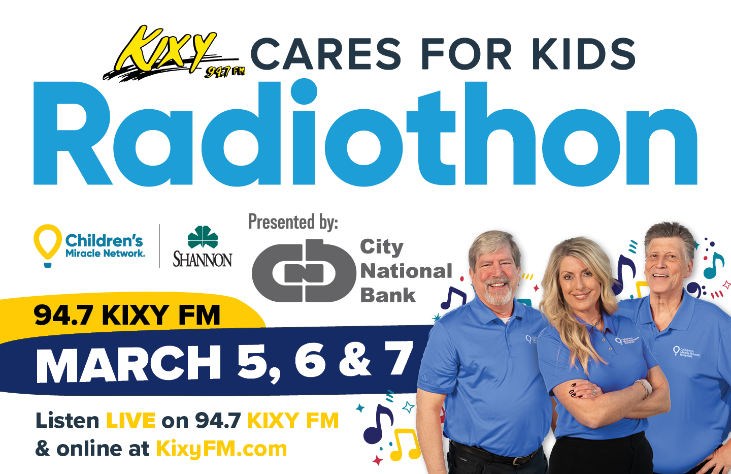 On behalf of the KIXY hosts Jay Michaels, Rick Andrews and Delaine Hale, our Miracle Families and the staff at Shannon Medical Center, we thank you again for your support of the 2026 KIXY Cares for Kids Radiothon and for your donation to the Children’s Miracle Network! You are truly making miracles happen for our children!