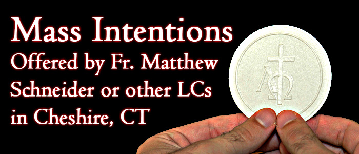 (Note on stipends: A stipend is an offering given to a priest as alms to support his needs, in return for which he promises to offer a Mass for the donor’s intention. The stipend is not given as a price for the Eucharistic Sacrifice. It is rather a voluntary donation whose origins go back to the early Church. The stipend is usually $15 per mass in Connecticut. Mass stipends are not tax-deductible. If you are currently under financial hardship and unable to give even $15 but need a Mass said, please contact one of the priests of this community - Fr. Matthew Schneider, LC - via social media.)