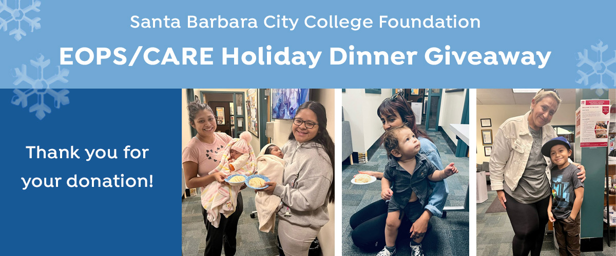 Your donation will help provide families in the CARE, EOPS, SPARC, NextUp, and CalWORKs programs with $200 grocery vouchers so they can enjoy a festive holiday meal together.