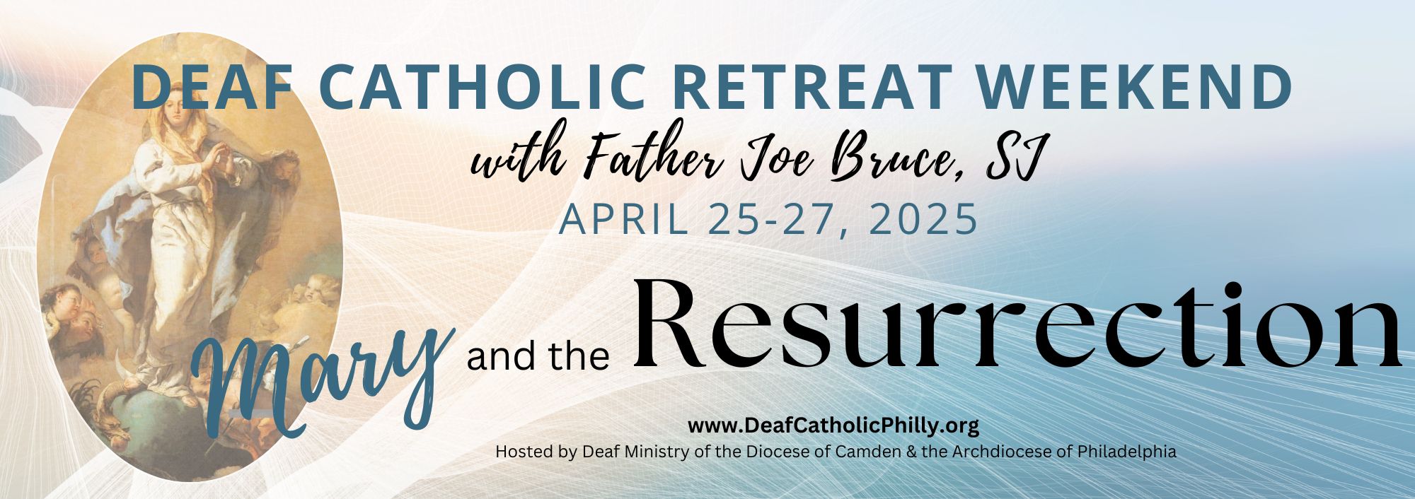 Encounter the risen Jesus! This year's Deaf Catholic Retreat weekend will be April 25-27, 2025 at the Villa Maria by the Sea Retreat Center (101 111th Street, Stone Harbor, NJ). Fr. Joe Bruce, SJ will be our retreat leader.